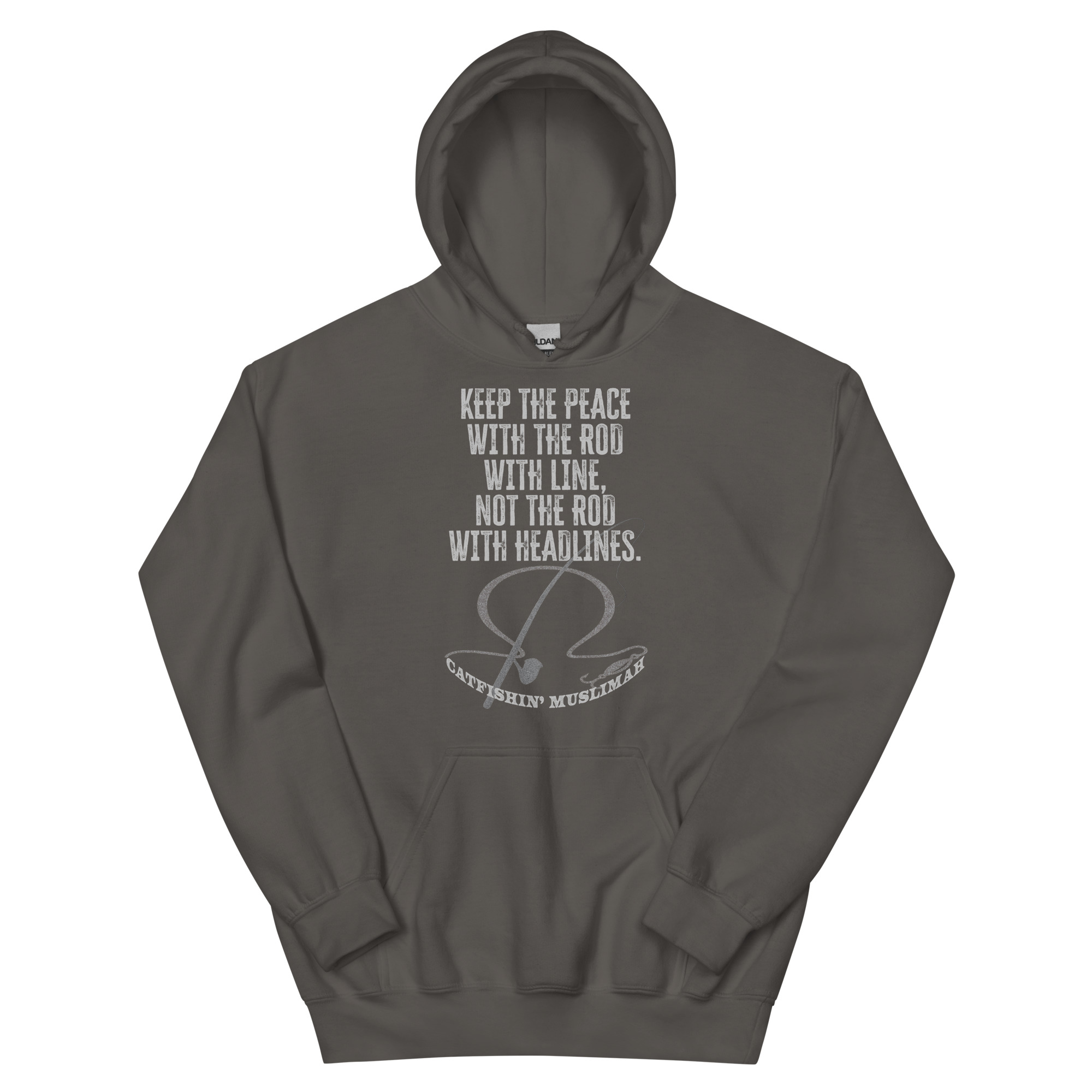 Choose peace with purpose. The “Keep The Peace” Unisex Hoodie is the first release from our Rods Over Violence™ line — featuring the bold slogan “Keep the peace with the rod with line, not the rod with headlines,” paired with our omega x Catfishin’ Muslimah emblem. Soft, durable, and available in 12 colors, this exclusive hoodie starts at $24.99 and is available only on our website.
