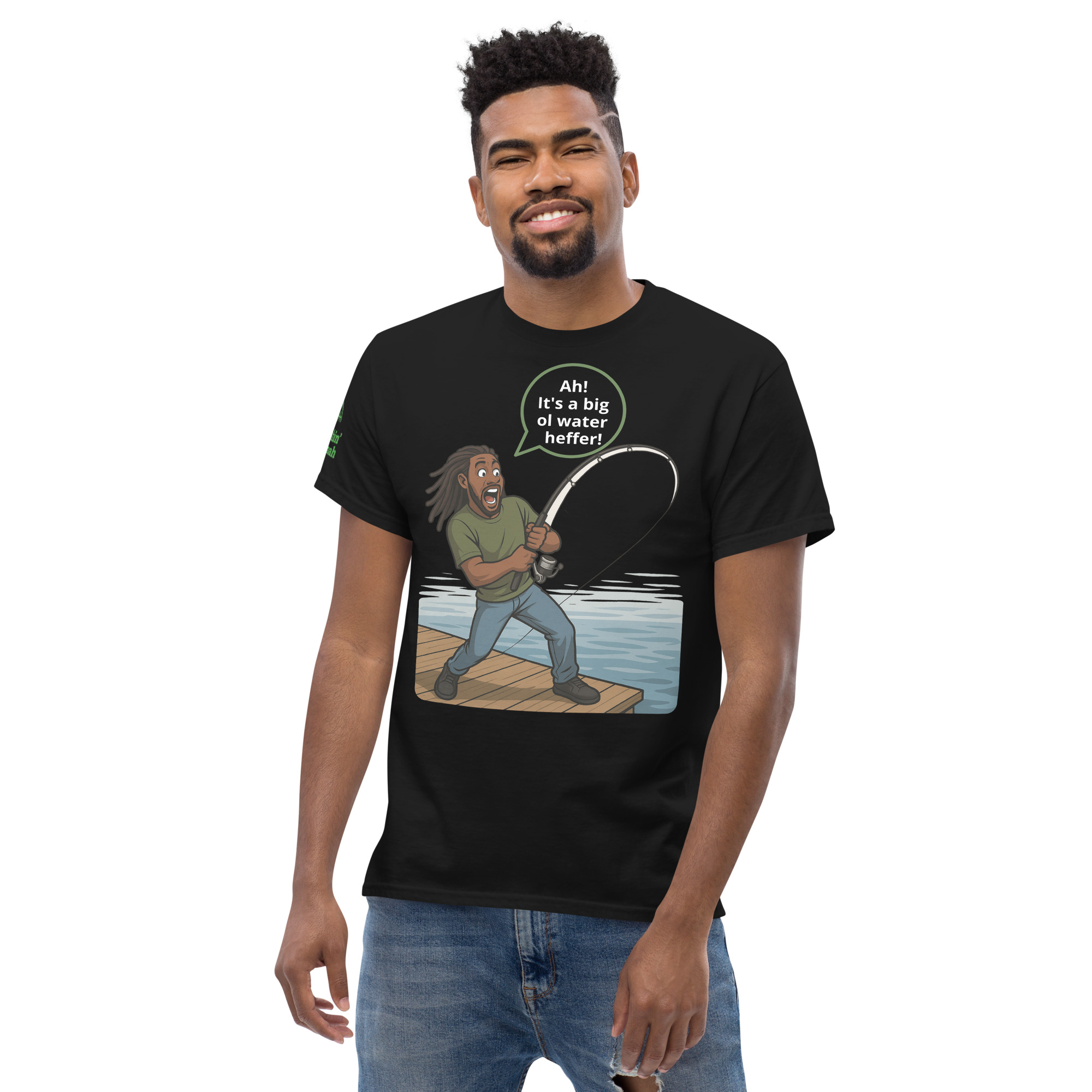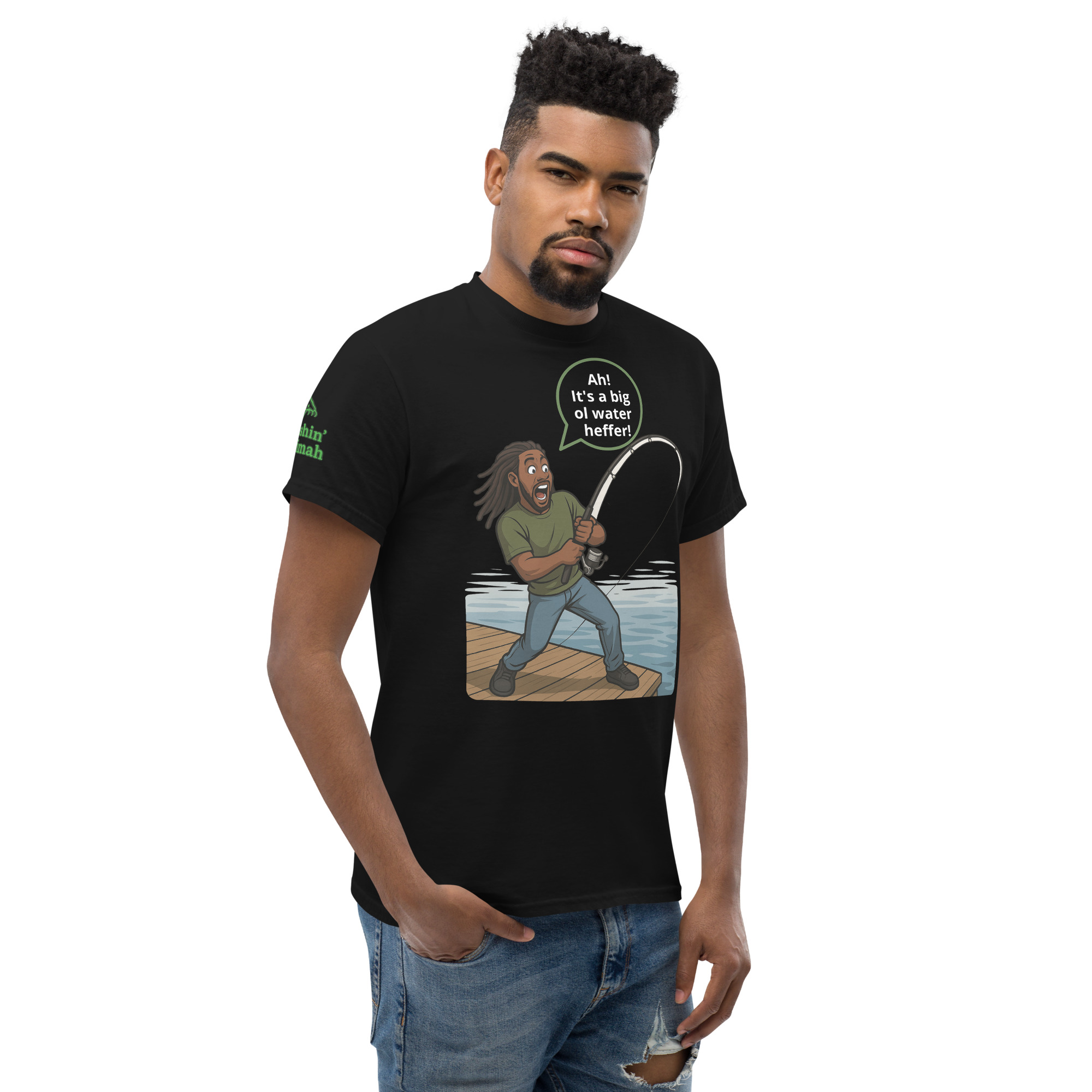 Big water. Bigger attitude. This tee isn’t shy—and neither are you. With a front hit that hollers “Ah! It’s a big ol water heffer!” and a back that seals the deal with “You are hung on the dock!”, this shirt is pure DC Adira: playful, provocative, and proudly rooted in fishing culture and spiritual grit.